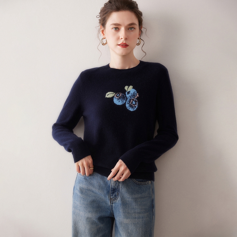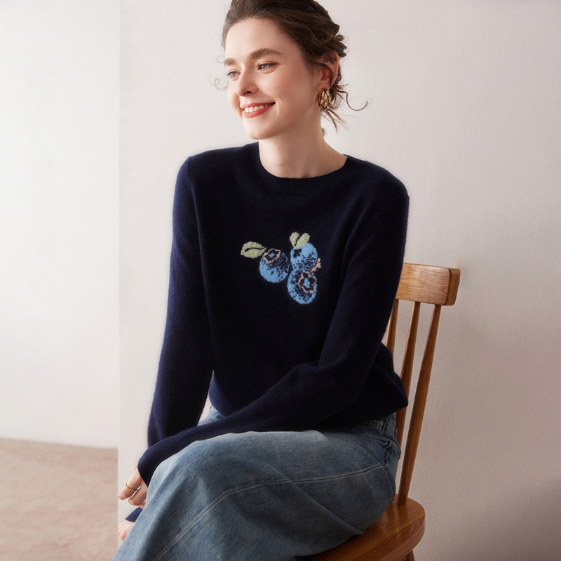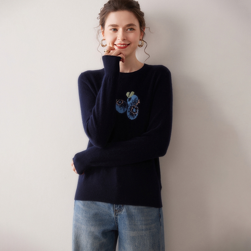 高级感上衣宽松打底针织衫 圆领100%纯山羊绒衫 女高端毛衣秋冬新款