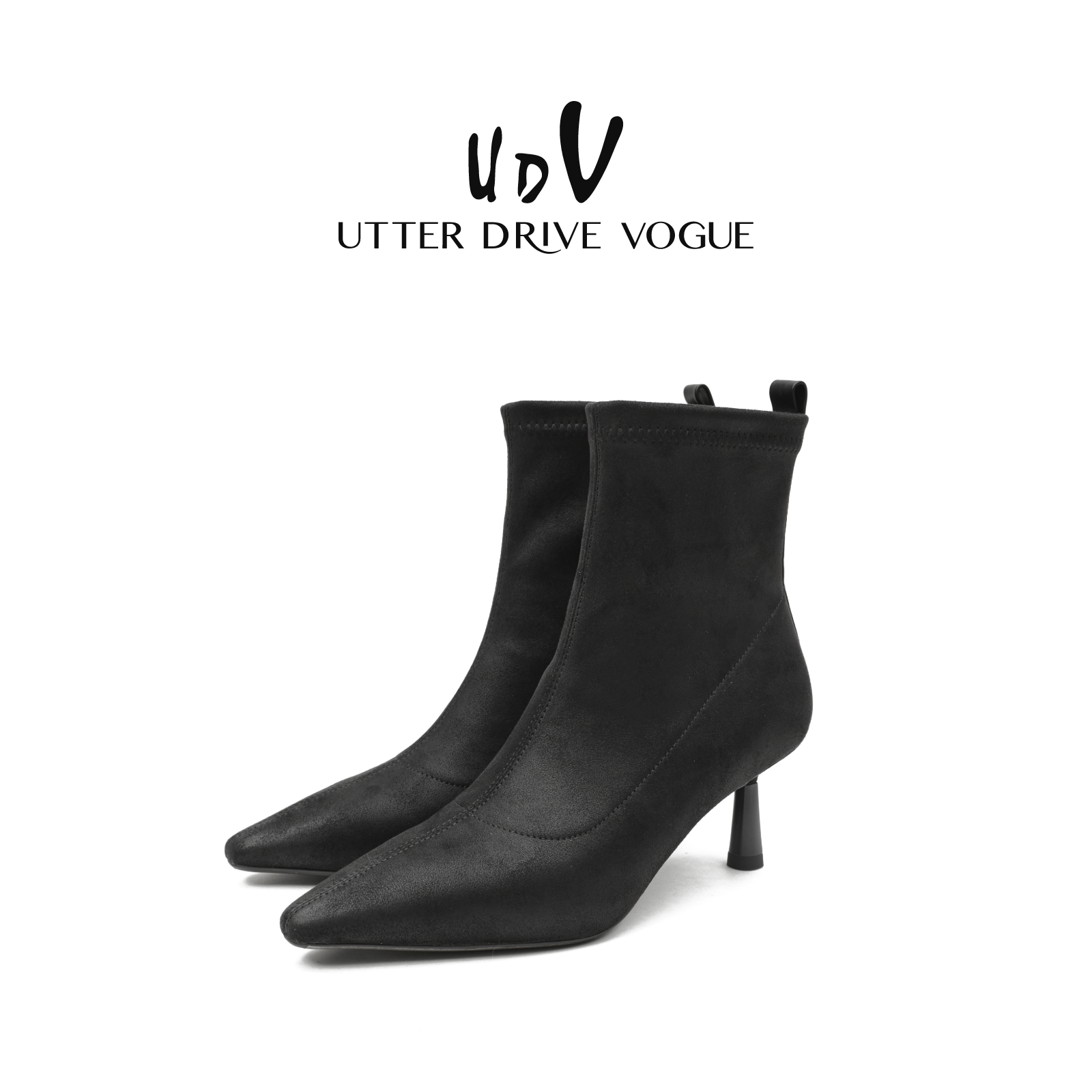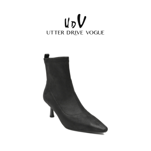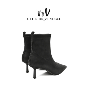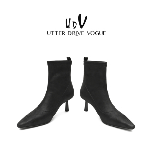 单鞋 靴擦色百搭黑色高跟鞋 时装 UDV细跟弹力瘦瘦靴女2025秋冬新款