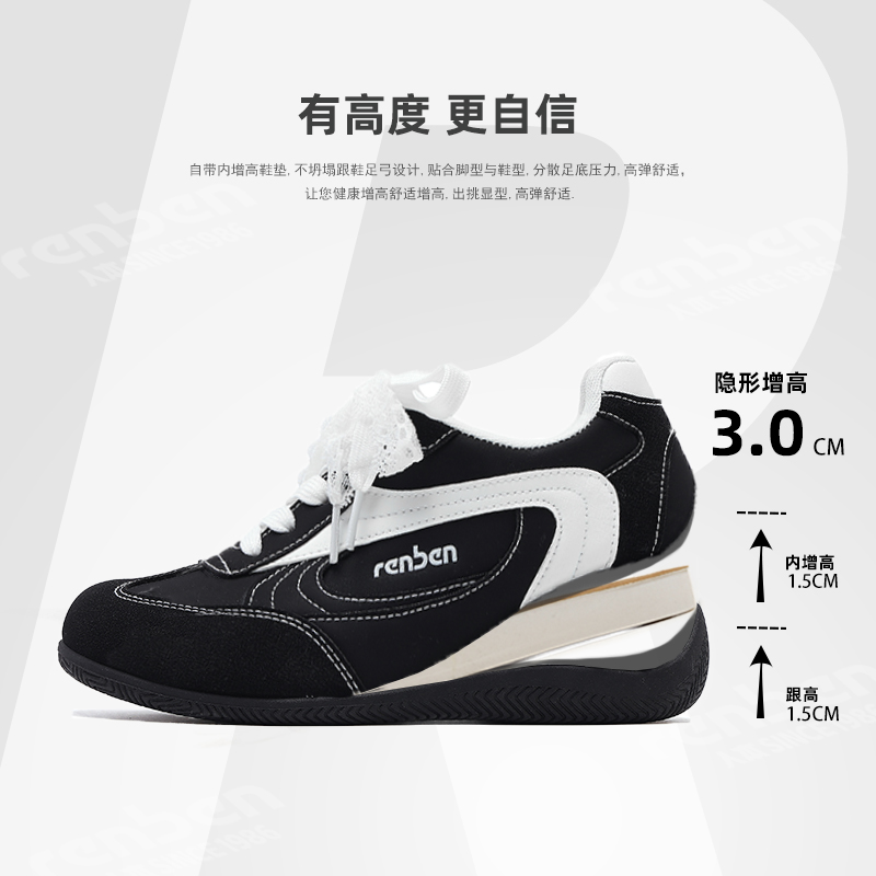 秋季 红色鞋 子厚底板鞋 内增高德训鞋 加绒运动鞋 2025新款 休闲鞋 女款