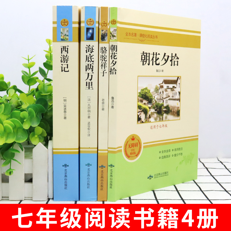 课外书初中阅读书籍名著配套人教7上 七年级推荐 骆驼祥子海底两万里初一上册下册 朝花夕拾和西游记鲁迅原著必读正版 下老师F 4册