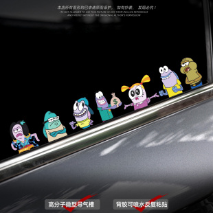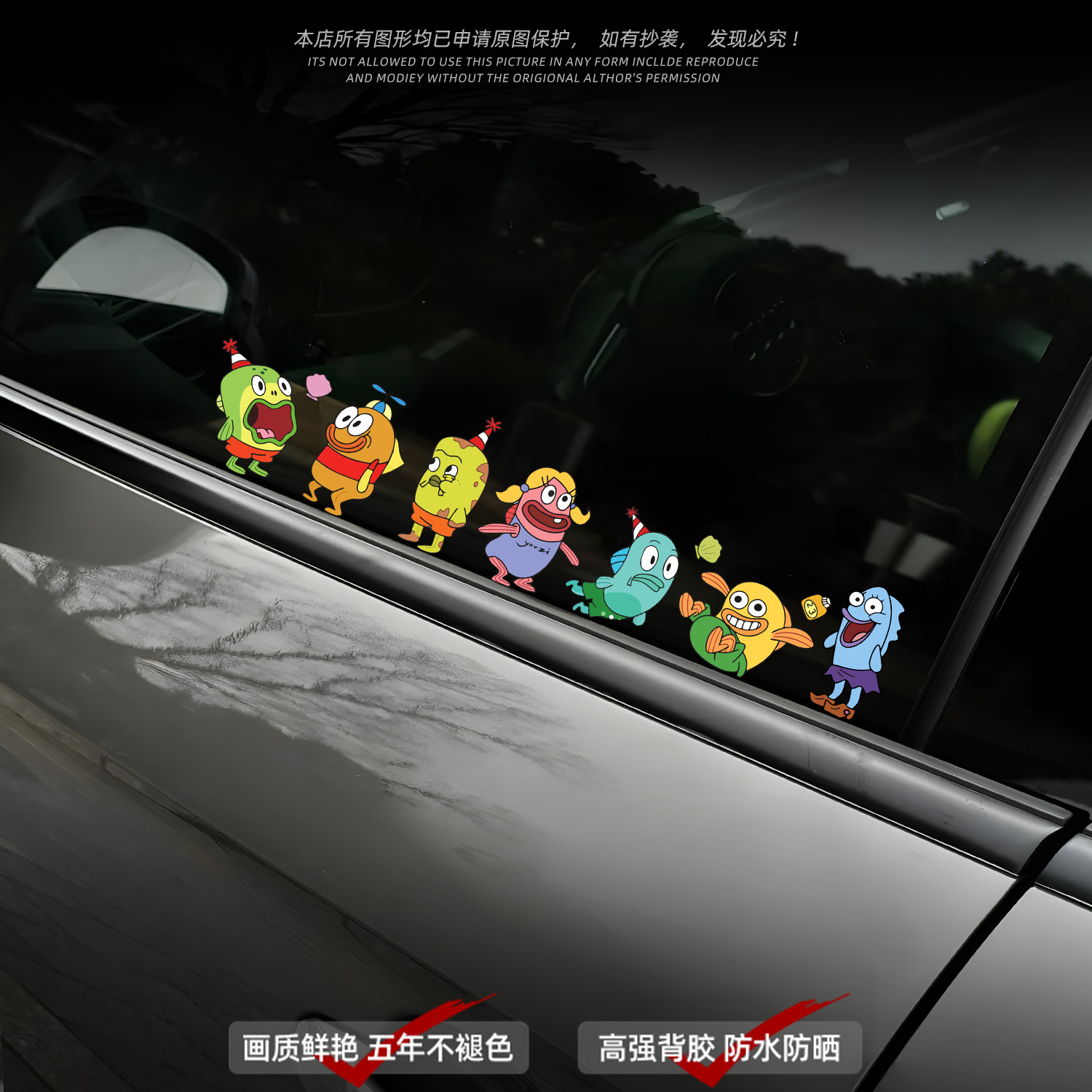 适用于汽车车窗可爱卡通比奇堡排排贴车身装 饰贴画遮挡划痕防水贴