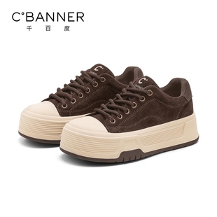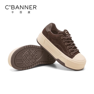 子女帆布休闲鞋 千百度厚底小白鞋 百搭增高运动板鞋 新款 女2025秋季