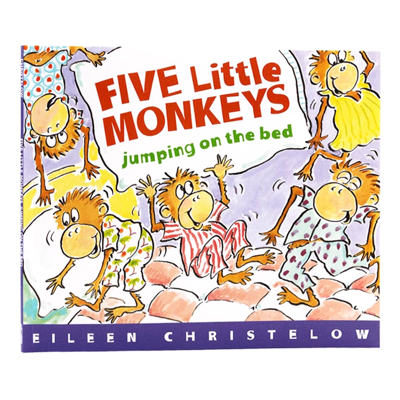绘本廖彩杏书单 幼儿童早教启蒙 Monkeys Tree Little Sitting 平装 五只小猴坐在树上在床上跳来跳去3册 英文原版 Five