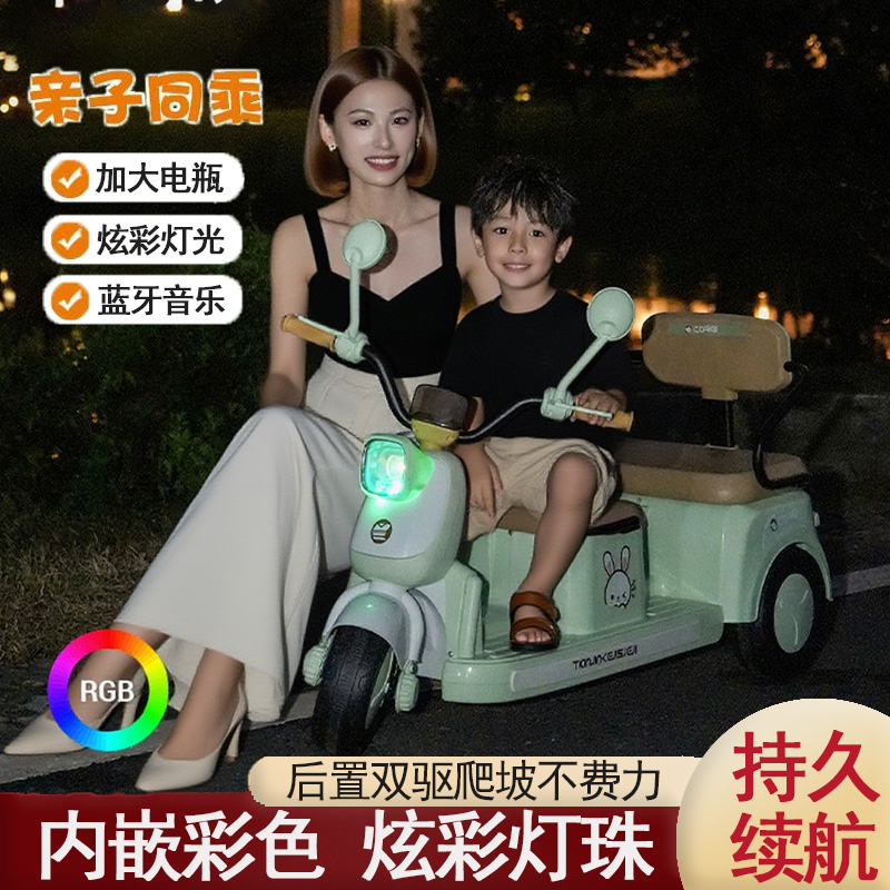 儿童电动三轮车摩托车充电遥控车男女小孩可坐人双人宝宝车玩具车