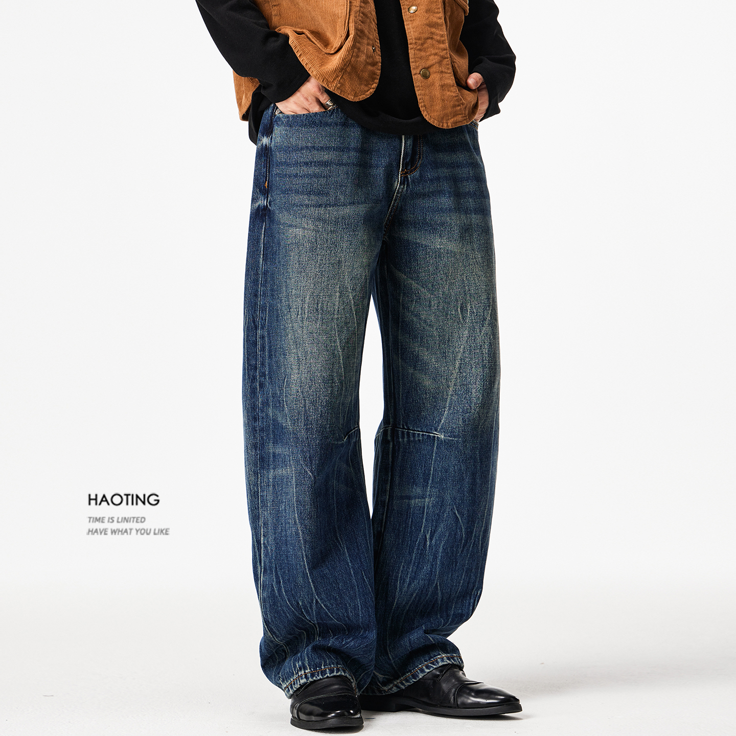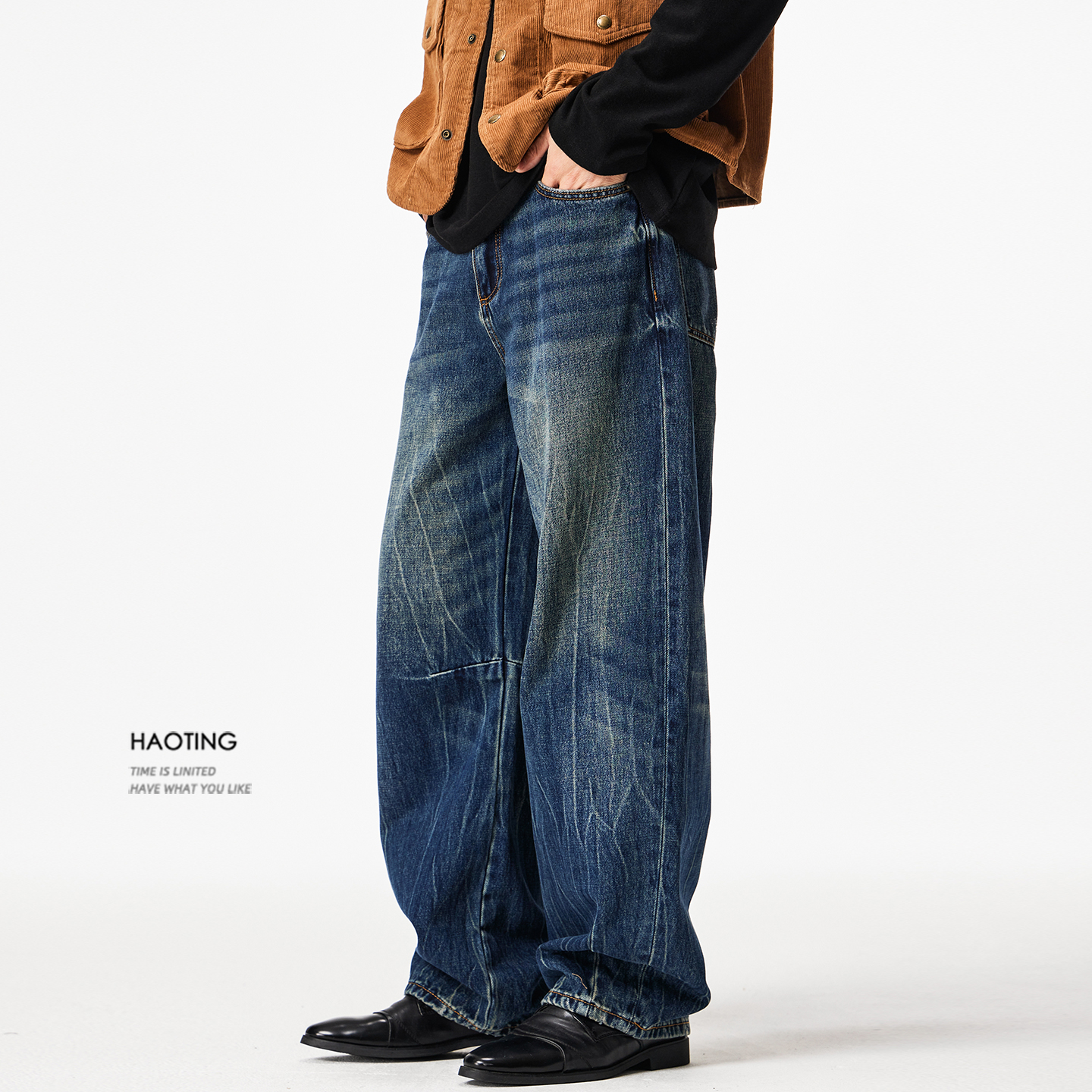 复古水洗做旧牛仔裤 潮牌宽松直筒阔腿长裤 男款 2025新款 子 秋季 美式