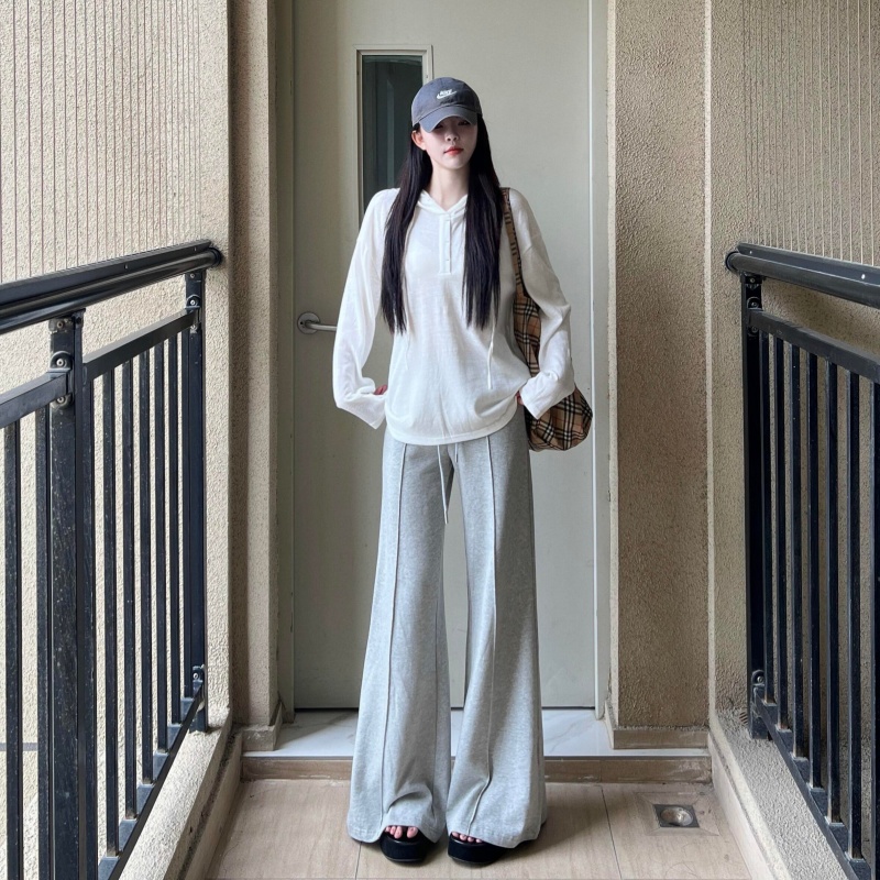 气质微喇阔腿裤 新款 两件套 防晒T恤上衣女秋季 慵懒风宽松连帽长袖