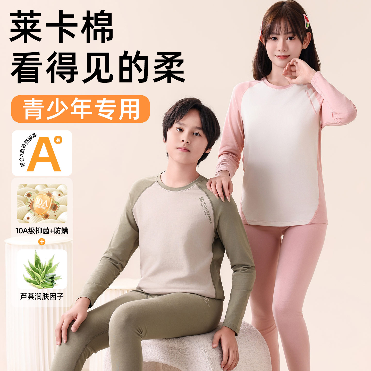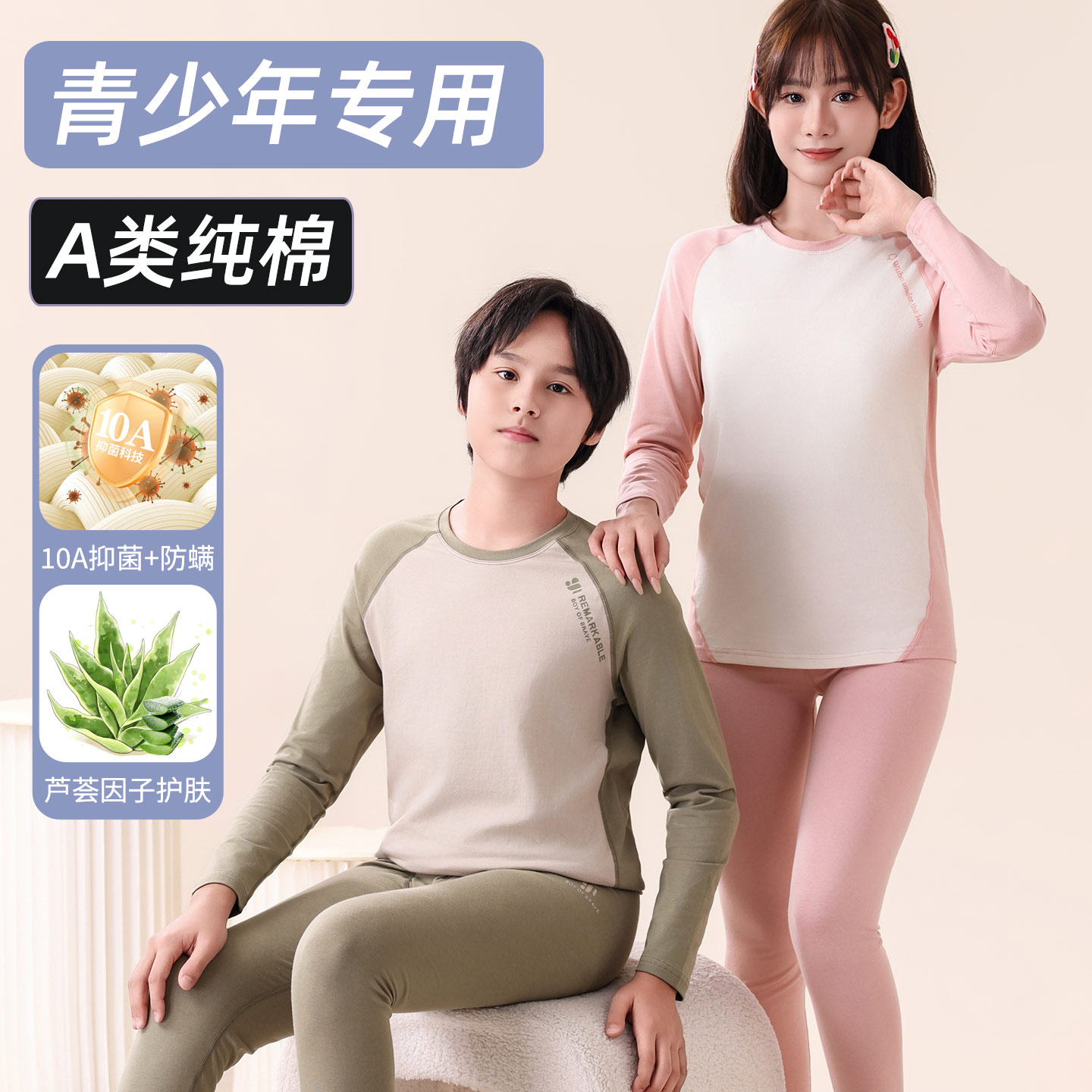秋冬季 保暖内衣青少年学生抗菌柔软纯棉线衣线裤 套装 大童秋衣秋裤