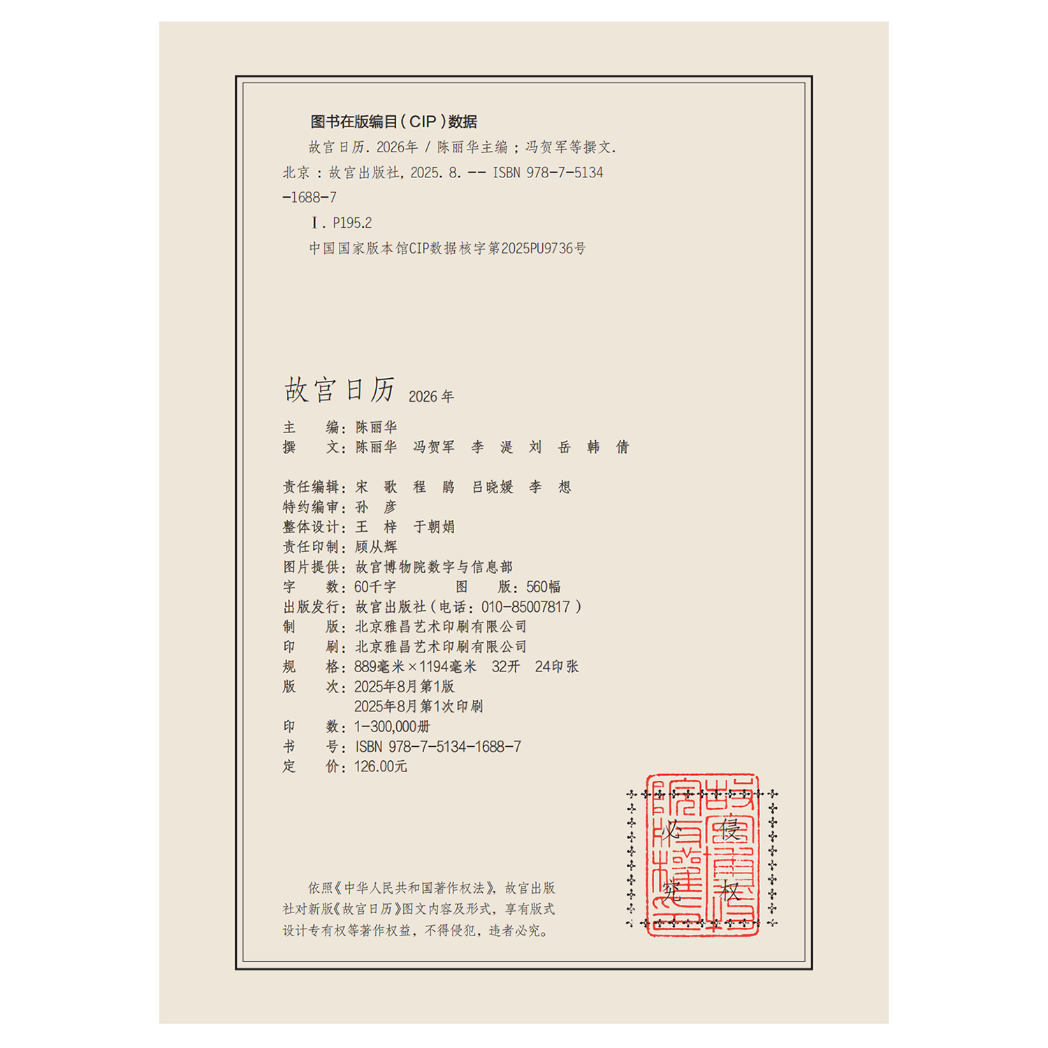 宣纸版 收藏艺术鉴赏书籍 2026年故宫日历盖章版 社 故宫出版 白骏图 十二兽首钢印贴纸 赠生日快乐水晶贴纸 手工盖章60枚 现货 正版