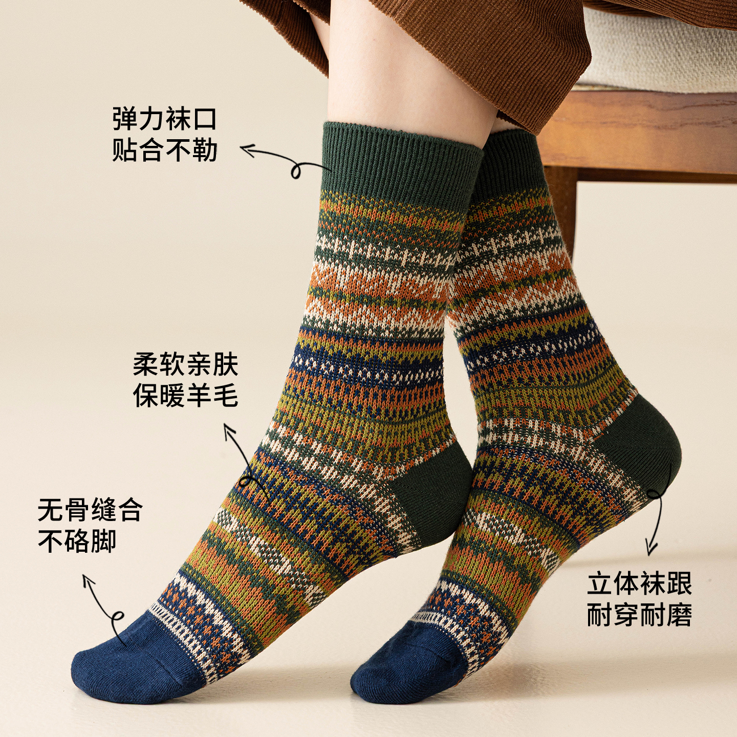 复古森系堆堆长袜配勃肯鞋 民族风袜子女秋冬季 纯棉中筒袜2025新品