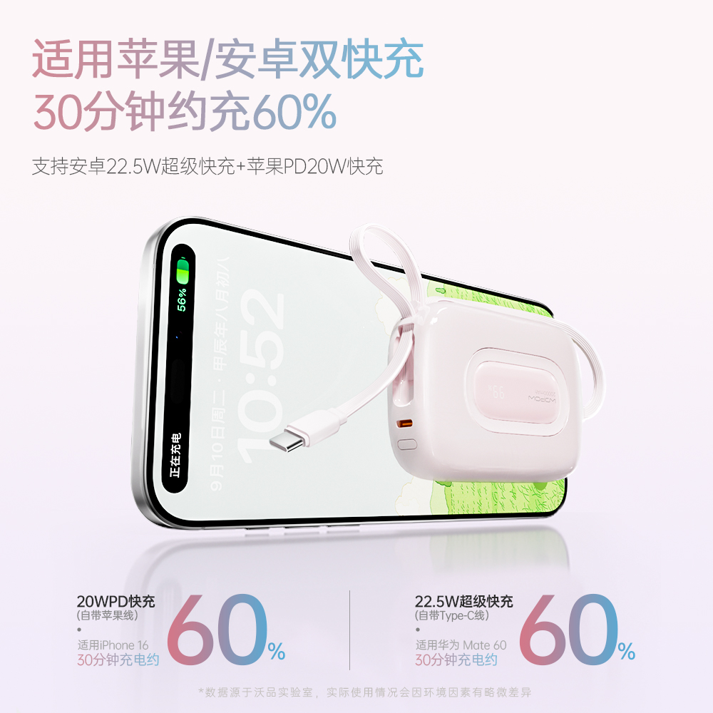 沃品充电宝小巧便携自带线超大容量快充可上飞机小彩蛋