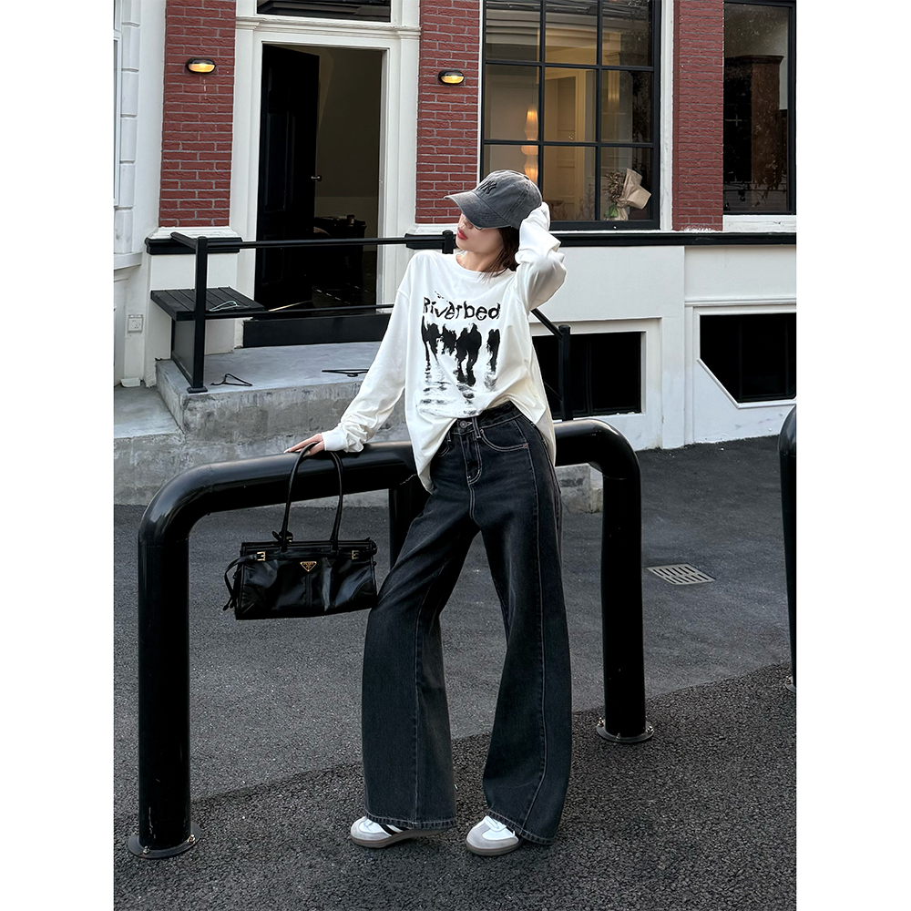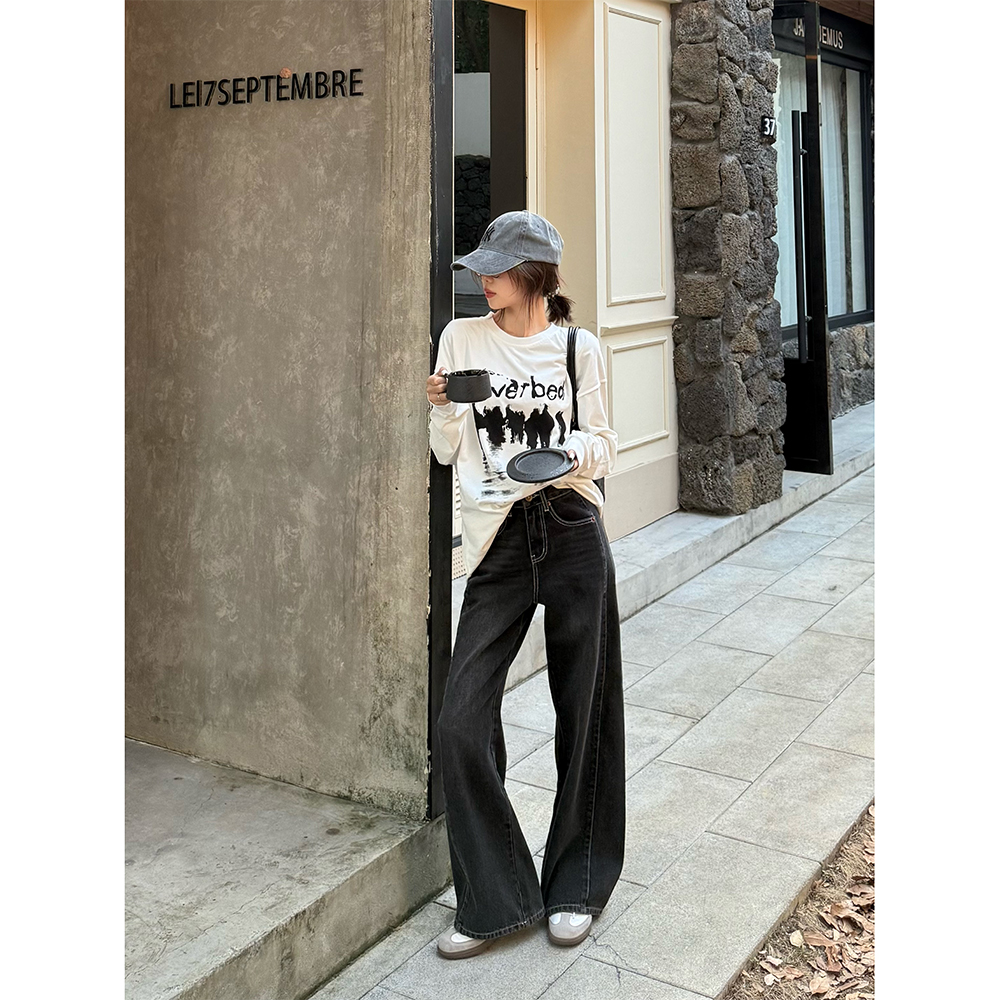 显瘦直筒拖地裤 新款 子女 女2025秋季 王家有鱼小个子高腰阔腿牛仔裤