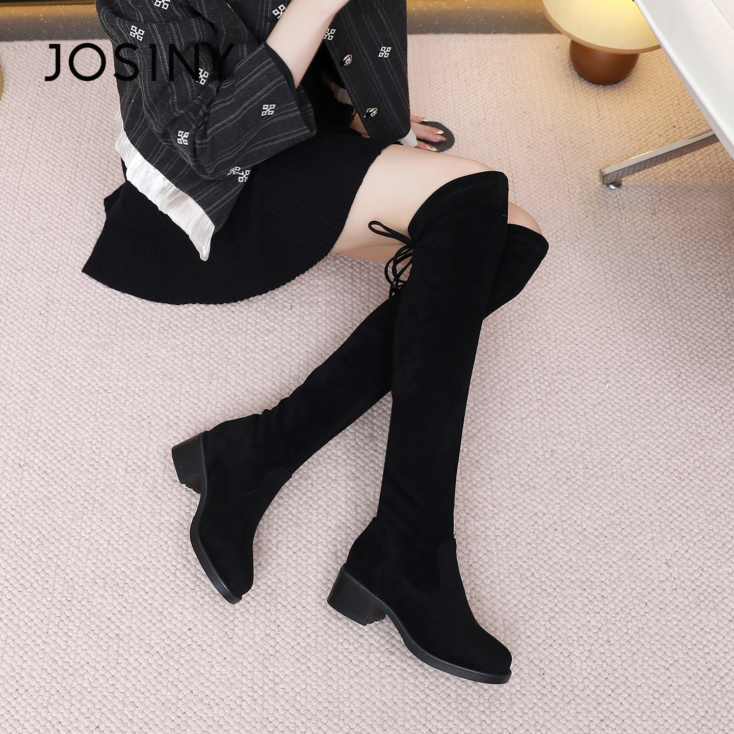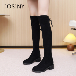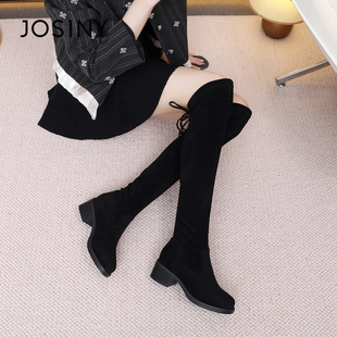 卓诗尼2025秋冬新款 舒适弹力靴潮流气质粗跟高筒靴女 过膝长靴时尚