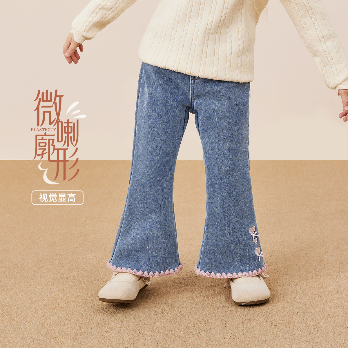 抗菌远红外 宝宝秋冬裤 女童牛仔裤 女孩休闲裤 子 儿童加绒保暖秋装