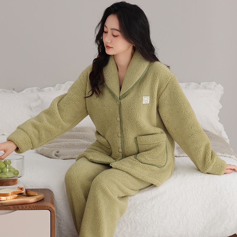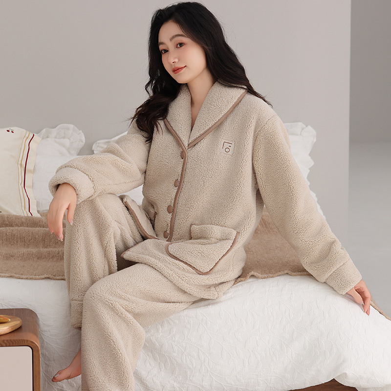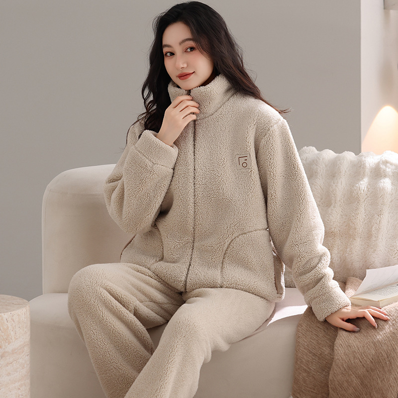 抗静电羊羔绒家居服 睡衣法兰绒加绒加厚秋冬季 2025新款 女士冬季