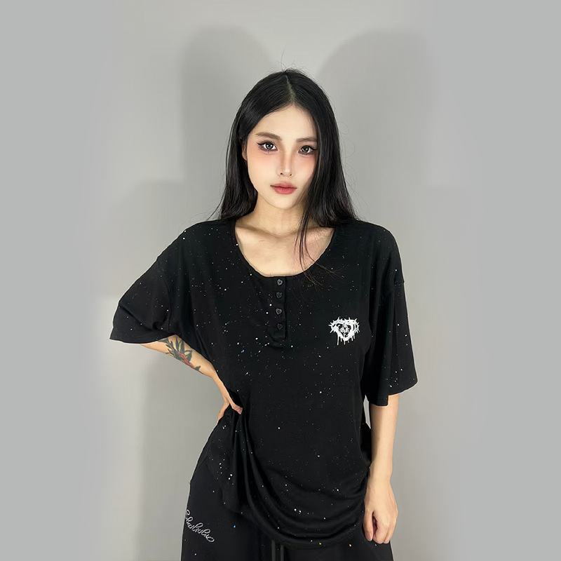 辣妹修身 打底衫 显瘦上衣 T恤女春秋内搭短款 设计感小众正肩V领长袖