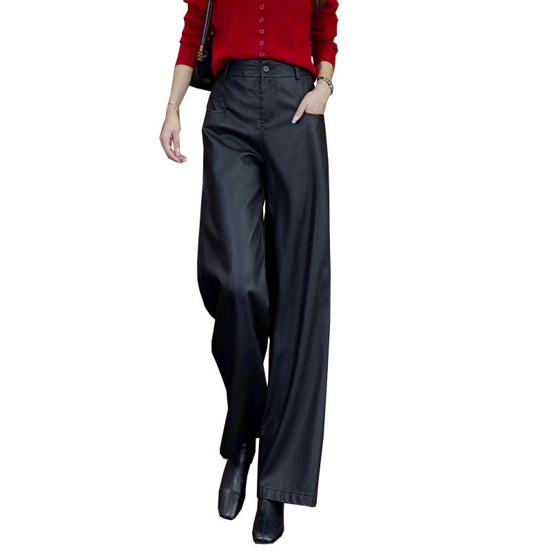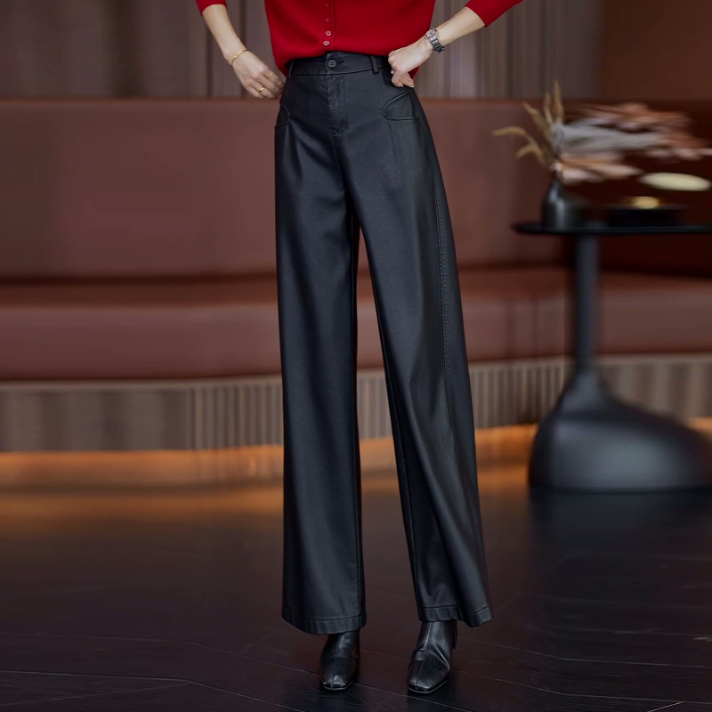 女春秋新款 休闲直筒慵懒松弛感裤 高腰垂感窄版 裤 子 西装 黑色阔腿裤