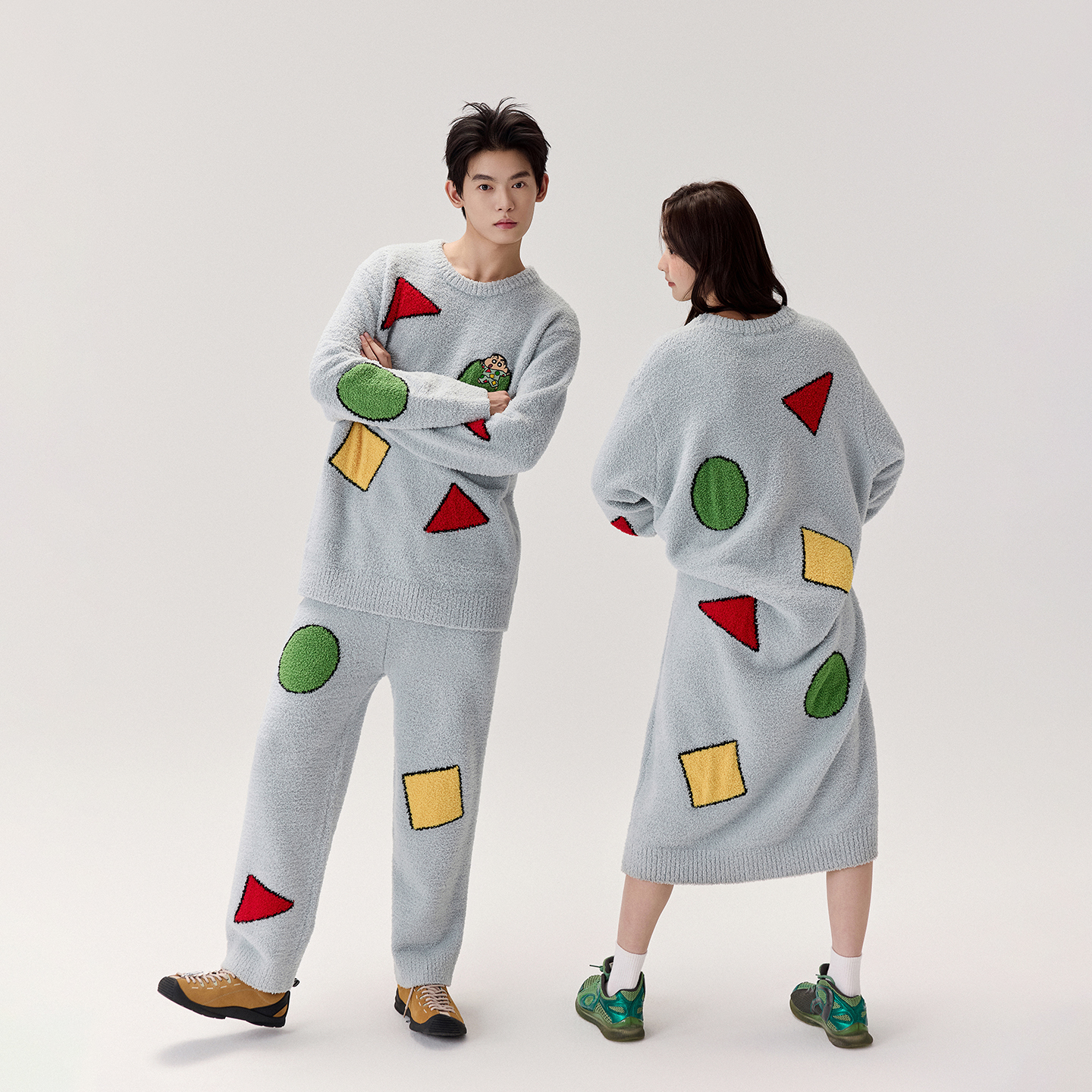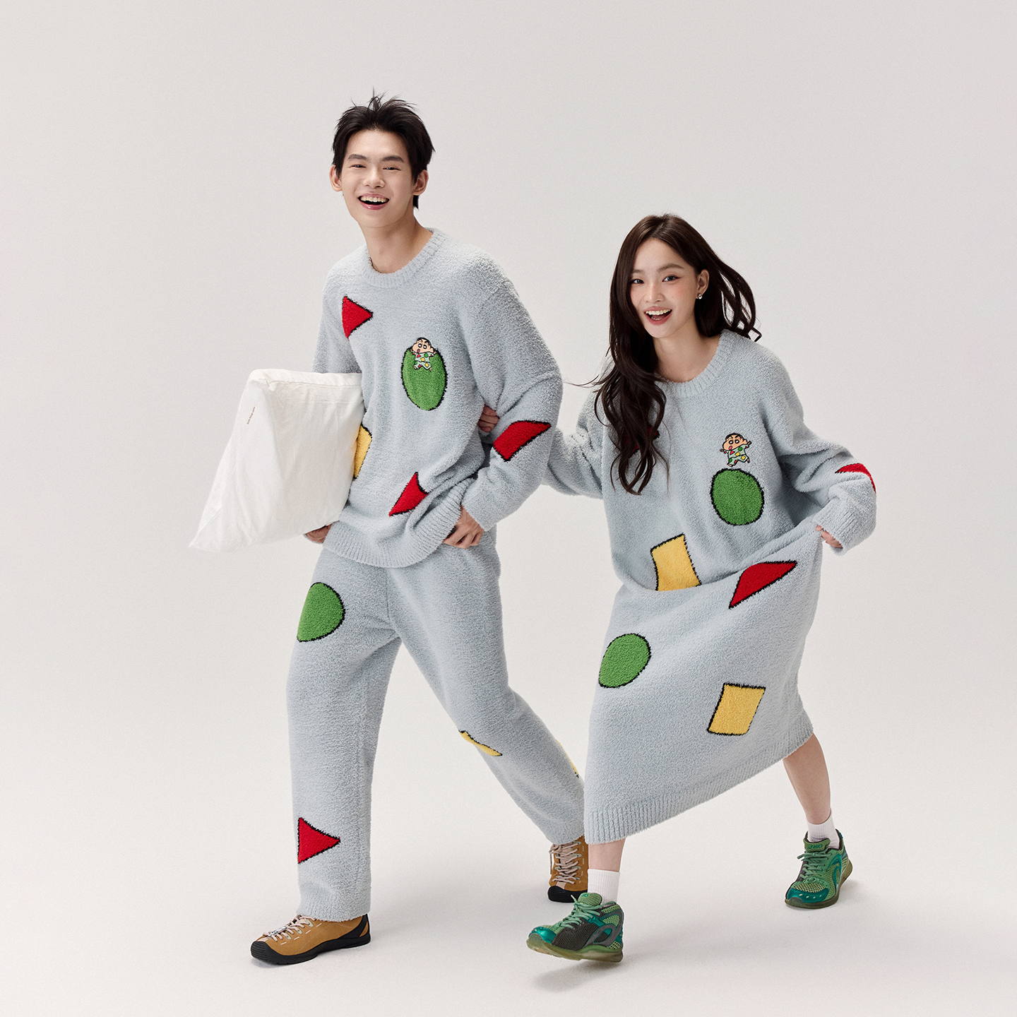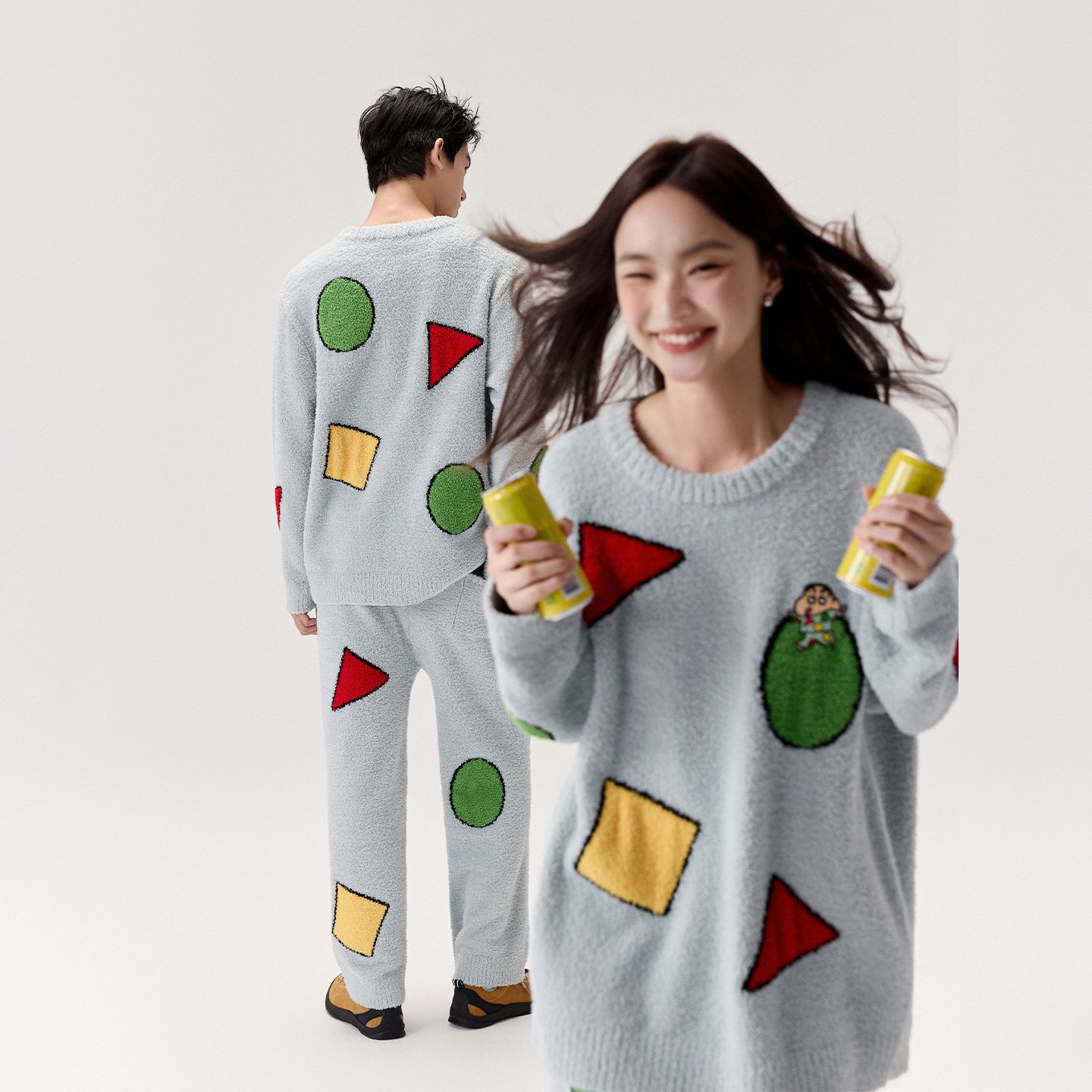 秋冬 半边绒可外穿情侣卡通睡袍睡衣家居服套装 亲嘴猫 蜡笔小新