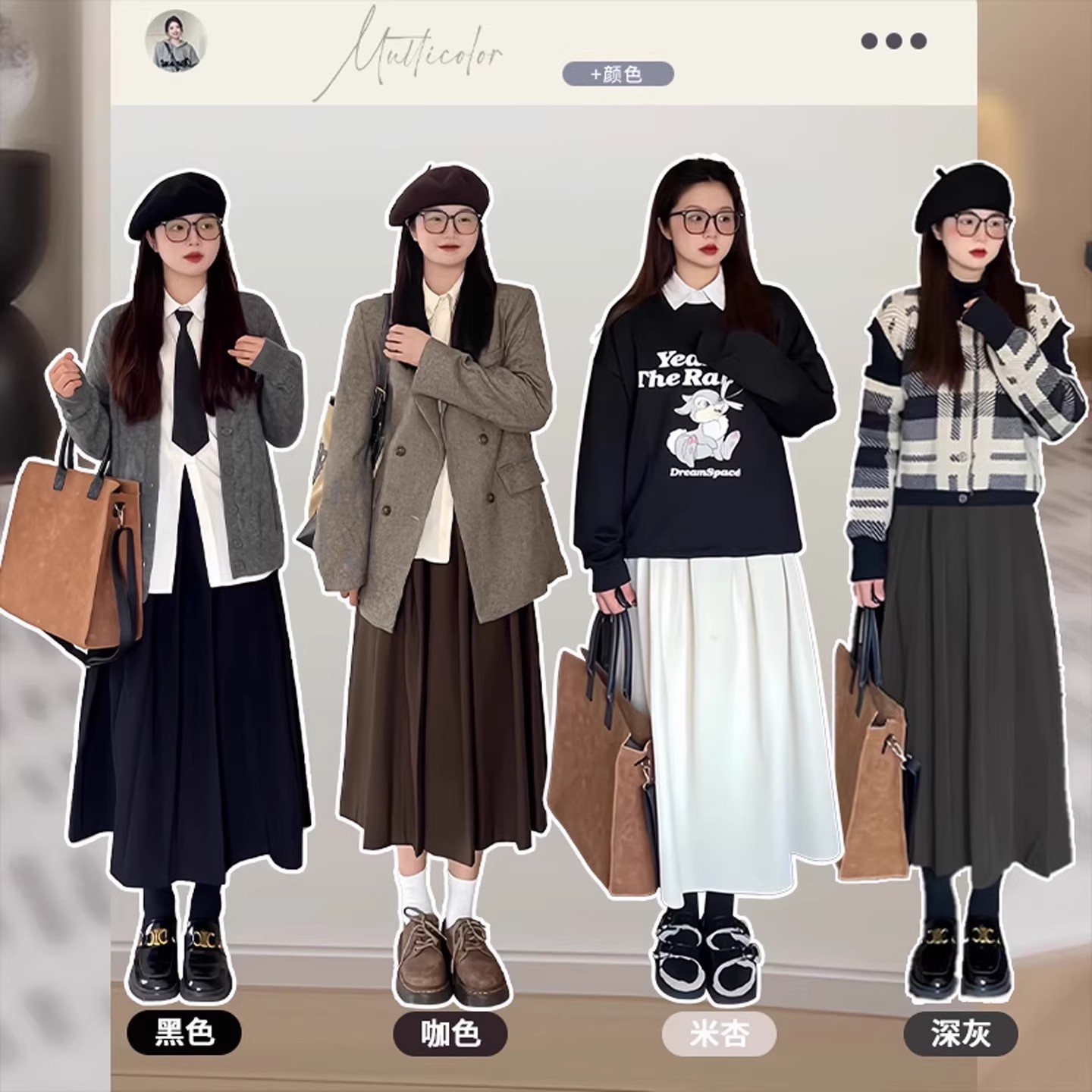 高腰梨型身材A字裙伞裙 半身裙百褶裙大码 胖mm显瘦百搭西装 中长款