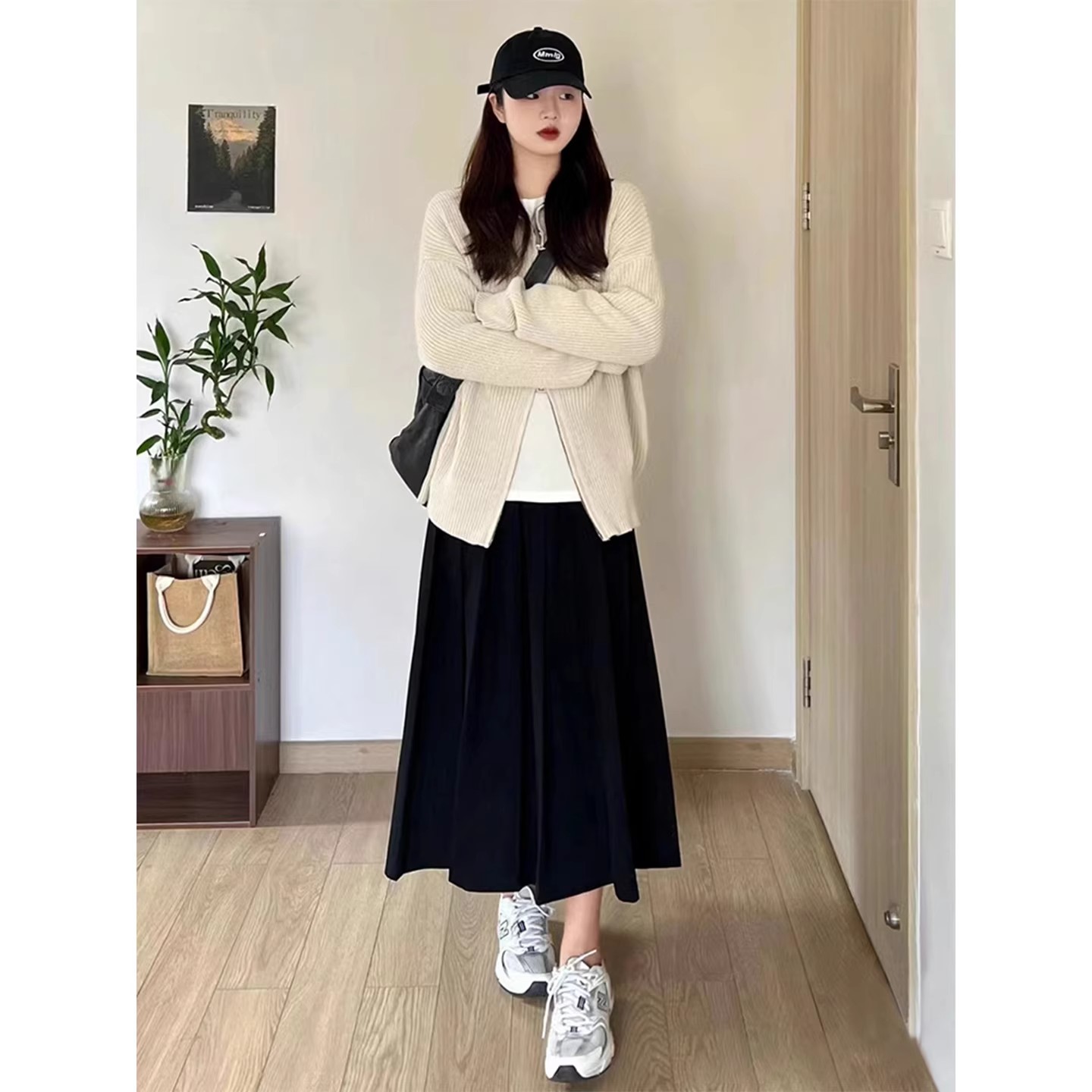 高腰显瘦a字裙 2025新款 0838 百搭乱褶百褶a字半身裙春秋女中长款