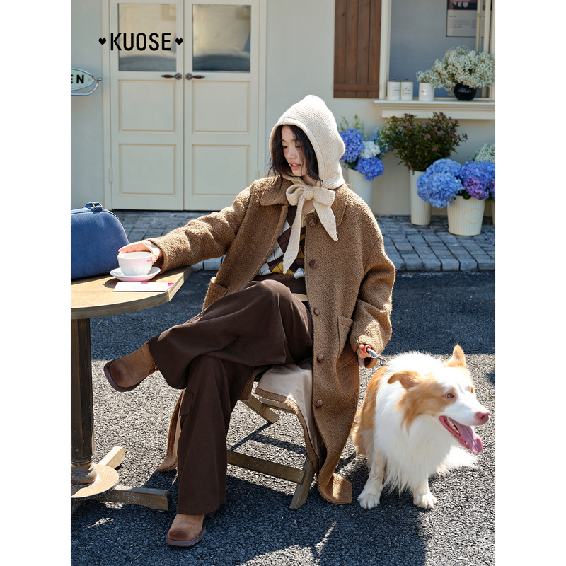 气质优雅百搭通勤外套 新款 秋水伊人宽松西装 领毛呢大衣女2025冬季
