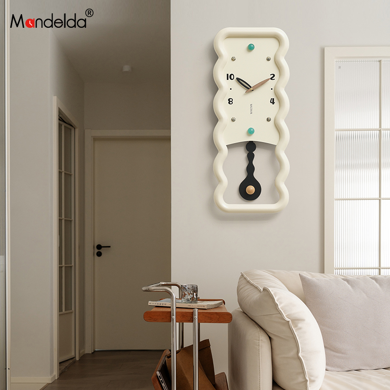 Mandelda免打孔中古风挂钟客厅家用摆钟表2025新款 创意时钟挂墙