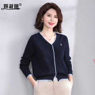 开衫 40岁妈妈洋气百搭薄款 毛衣 2025新款 早秋上衣高级感撞色针织衫