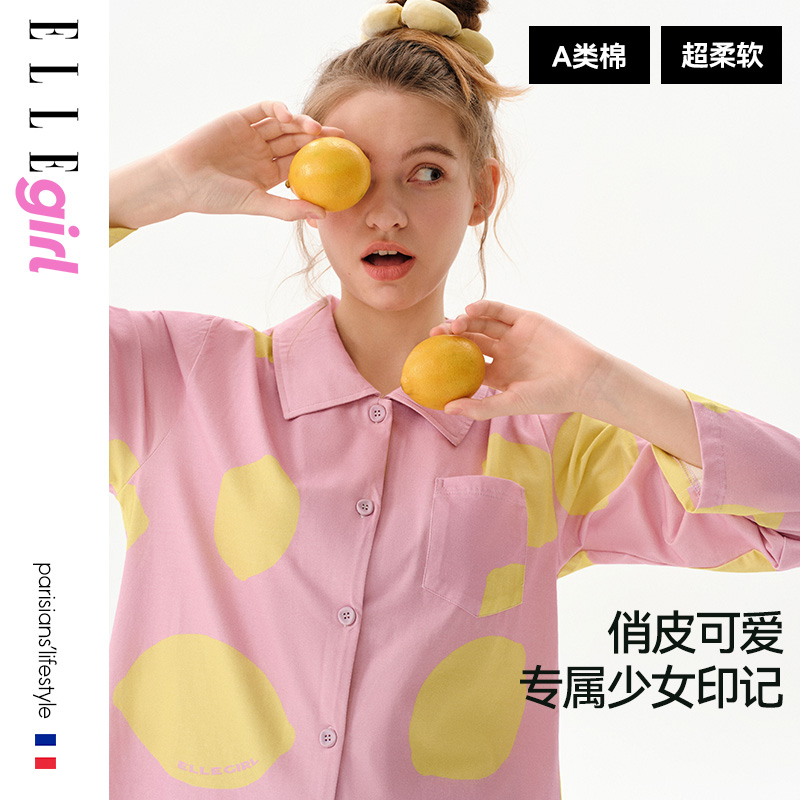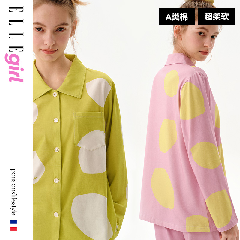 撞色长袖 秋冬新款 青少年学生纯棉家居服女 girl少女睡衣套装 ELLE