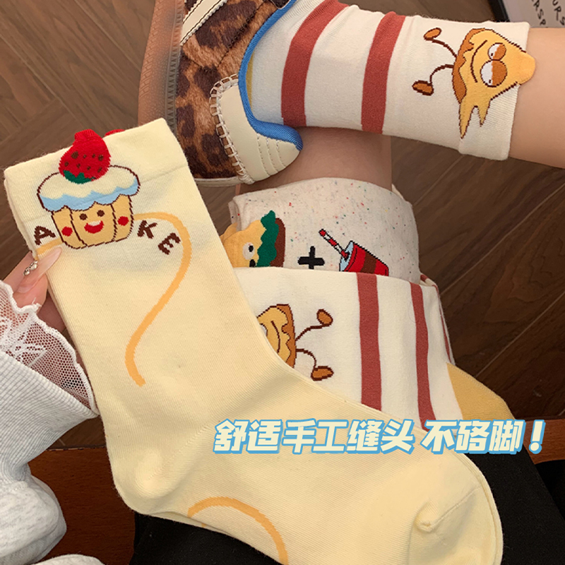 爆款 中筒袜2025新款 防臭抗菌美拉德条纹长袜女 春秋季 袜子女款