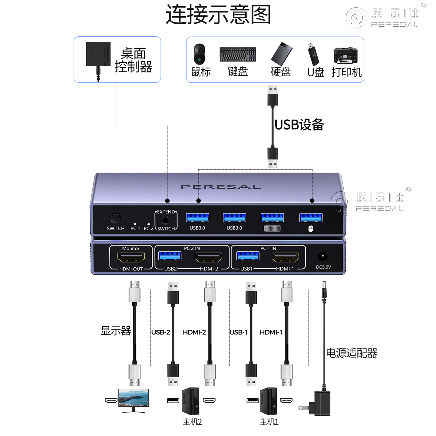 山泽hdmi高清4k分屏器三进一出转换信号台式 电脑笔记本屏幕切换器分配器视频分频器三分频分支器网络多屏显示
