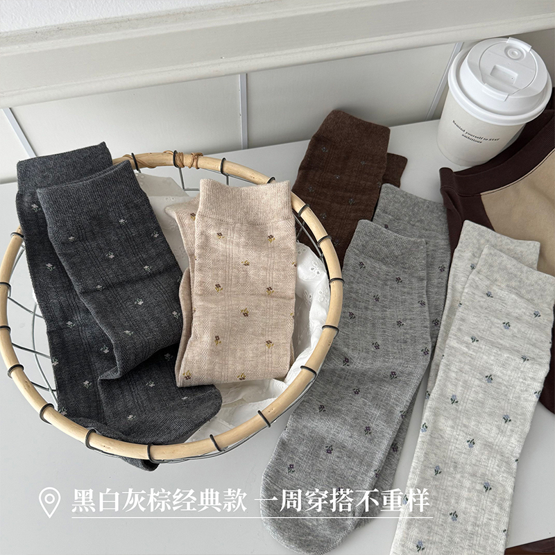7A抗菌纯棉中筒袜秋冬透气吸汗防臭袜 有棵树袜子男士 复古花纱