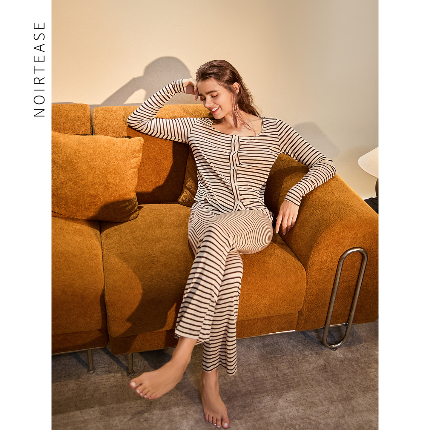 羊毛天丝睡衣女三件套透气显瘦家居服 春秋薄款 NoirTeas 超柔软