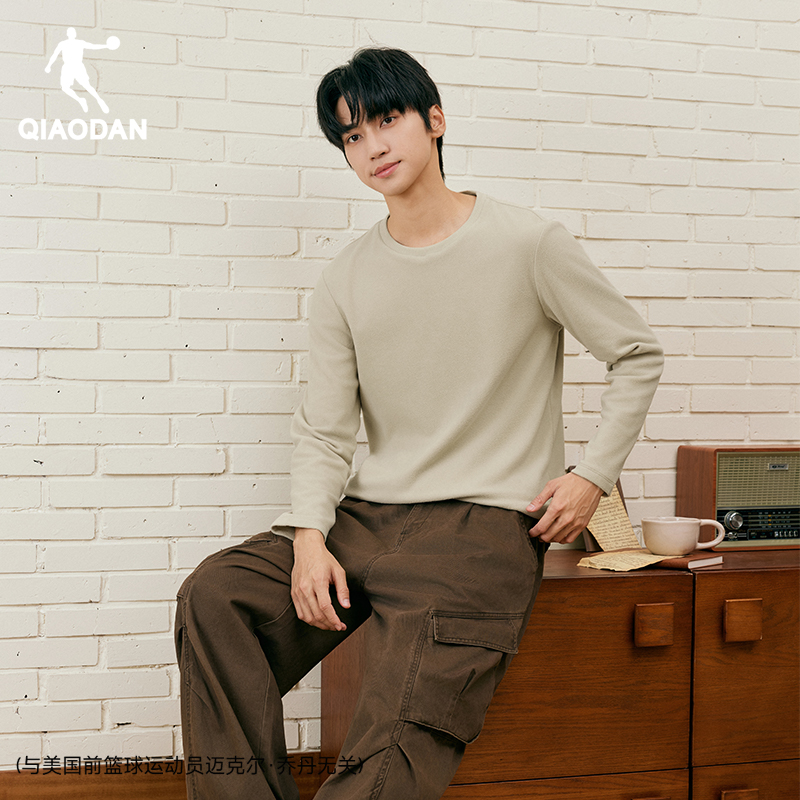 新款 t恤男秋冬季 乔丹圆领长袖 宽松休闲黑色加绒打底上衣 德绒