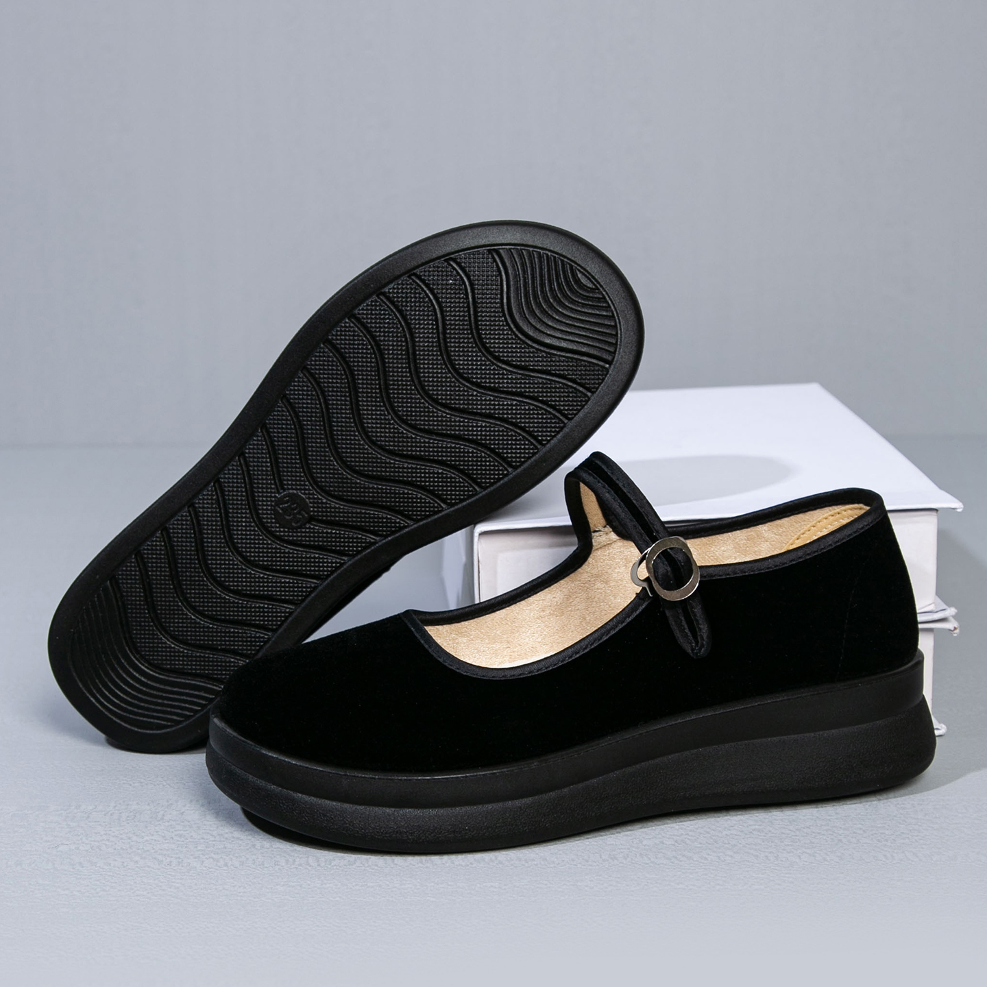 女鞋 平底妈妈舞蹈鞋 厚底工作鞋 单鞋 黑色坡跟防水台工装 老北京布鞋