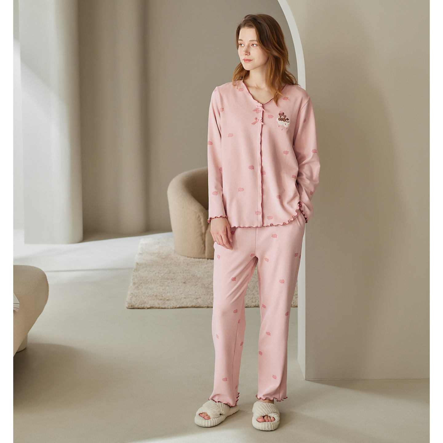 早秋小众设计感家居服慵懒卡通可外穿套装 睡衣女春秋季 带胸垫新款