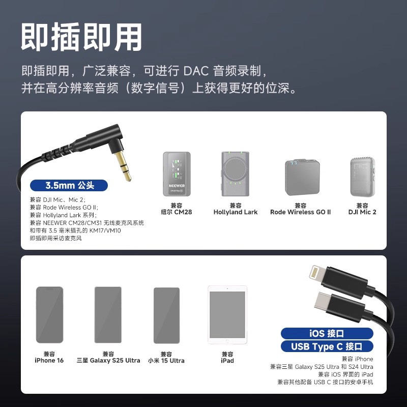 16安卓手机 c接口35车用转换器电脑音箱播放器15 NEEWER纽尔type c转3.5mm音频线aux音响专用连接线耳机type