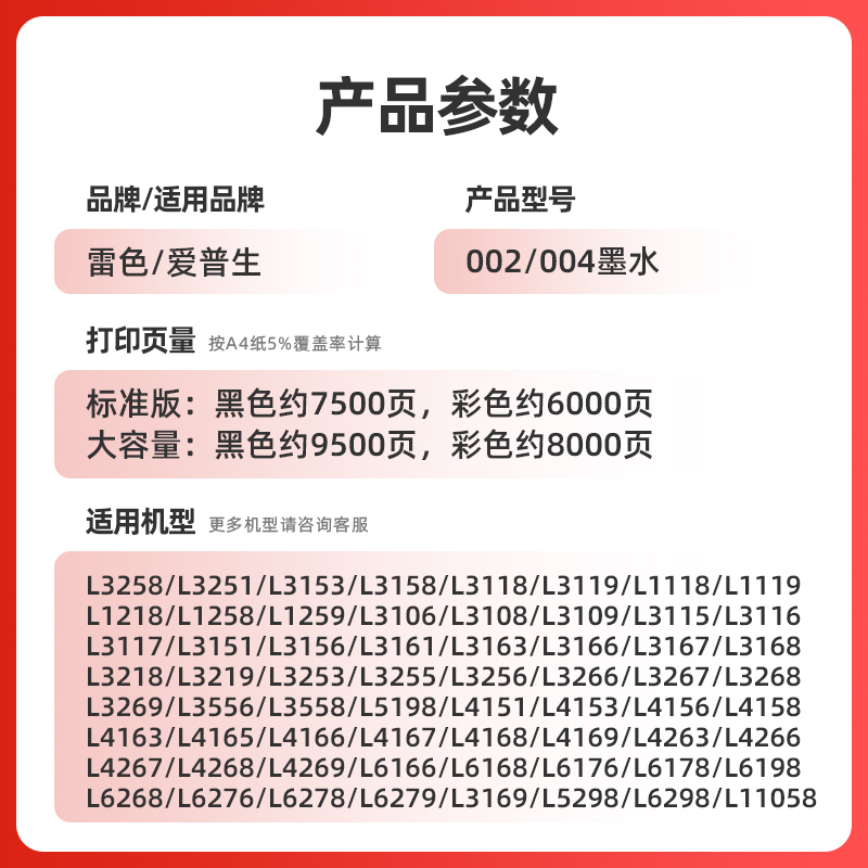 4269打印机L3253 L1218 3219 6178非原装 4166 L4169 4268黑彩色L1118 3255 4266 004墨水L3558 适用爱普生002