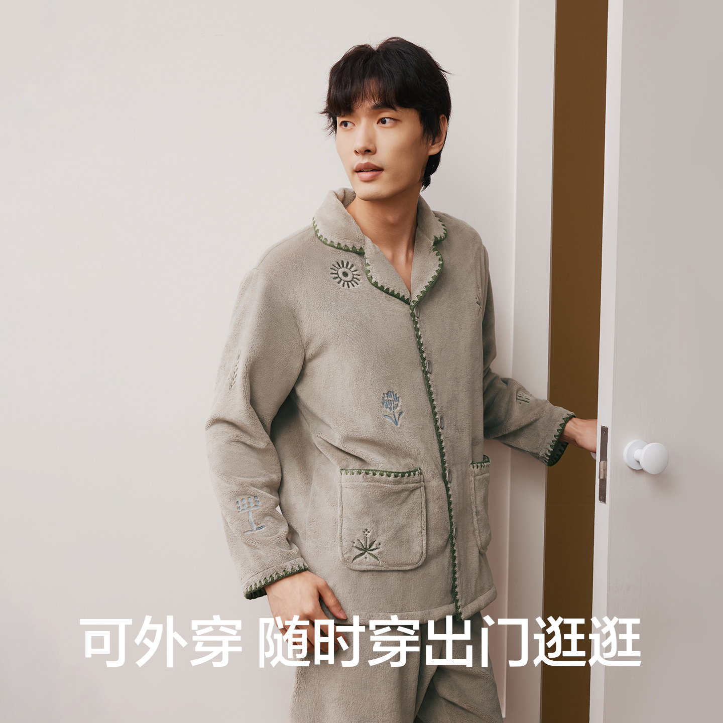 软糯舒适法兰绒睡衣男款 有棵树男士 睡衣2025秋冬新款