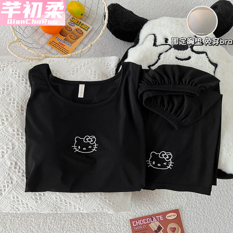 全棉家居服休闲套装 曼系男士 甜美时尚 宽松开衫 纯棉睡衣女春秋时尚