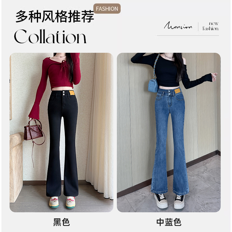 镰刀阔腿裤 高腰加绒加厚窄版 子 女秋冬2025新款 复古牛仔直筒弯刀裤