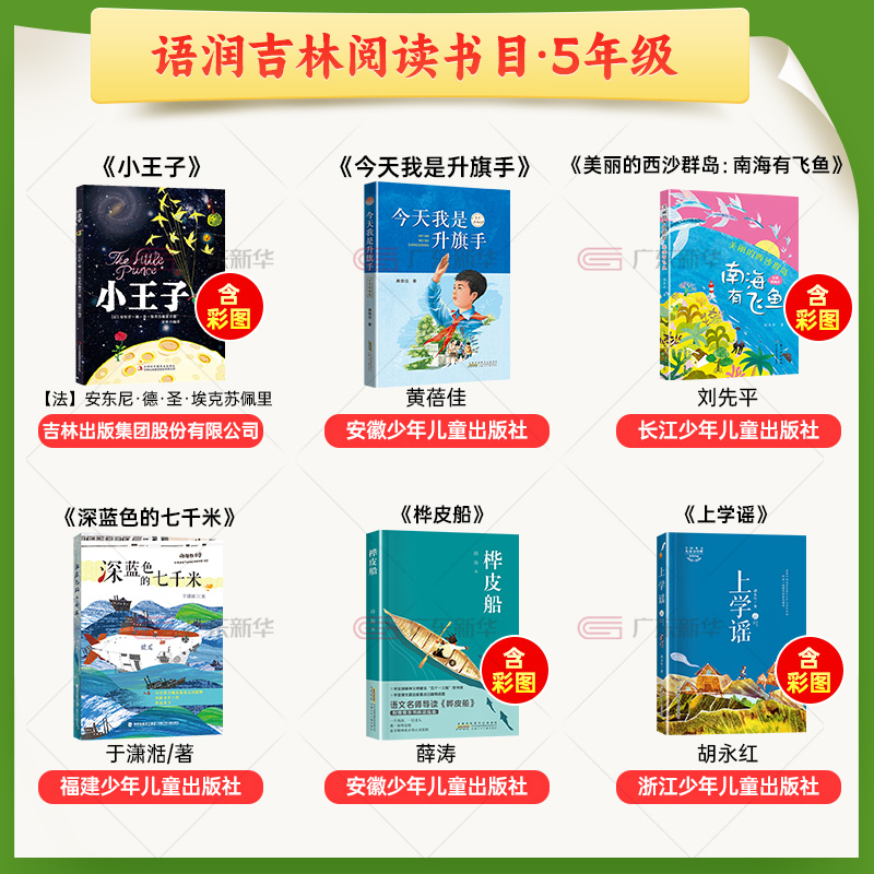 美丽 小王子桦皮船上学谣 西沙群岛南海有飞鱼 七千米 小学5年级课外 今天我是升旗手深蓝色 2025秋吉林语润五年级阅读书目全6册