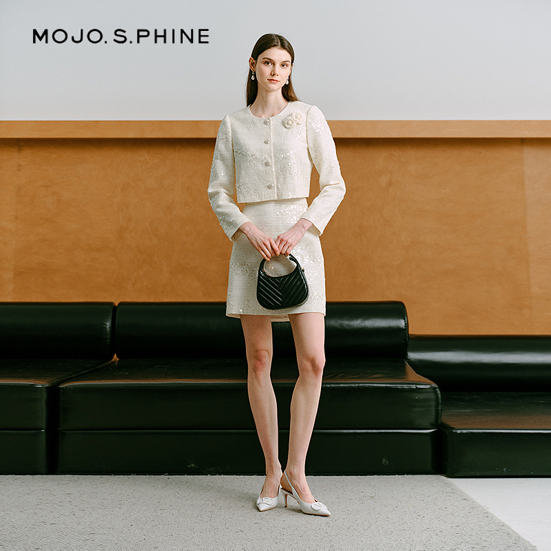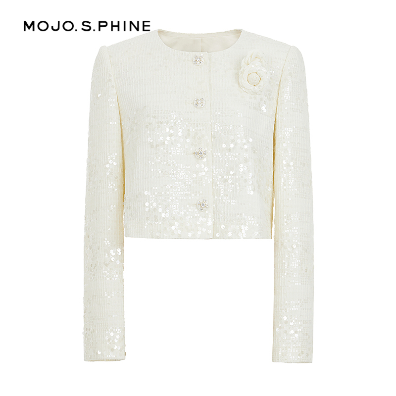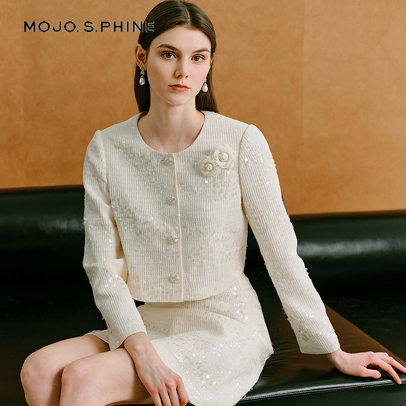 COCOBELLA静奢风珠片花纱毛呢外套短款 WL507 廓形小香风西装