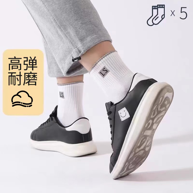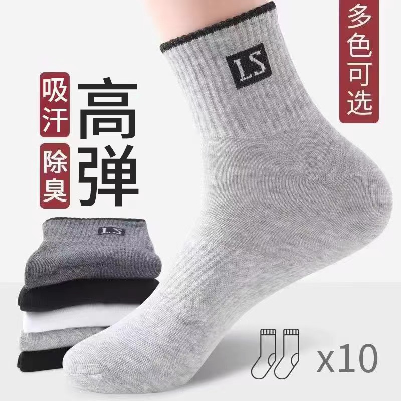 诸暨袜子男士 防臭中筒袜青少年纯色吸汗透气运动袜黑色 2025春秋款