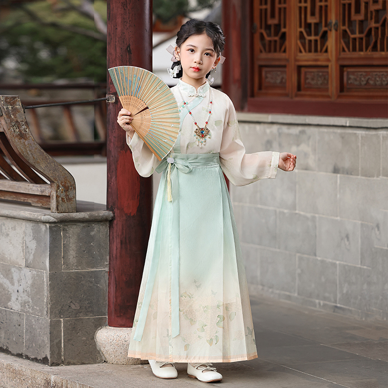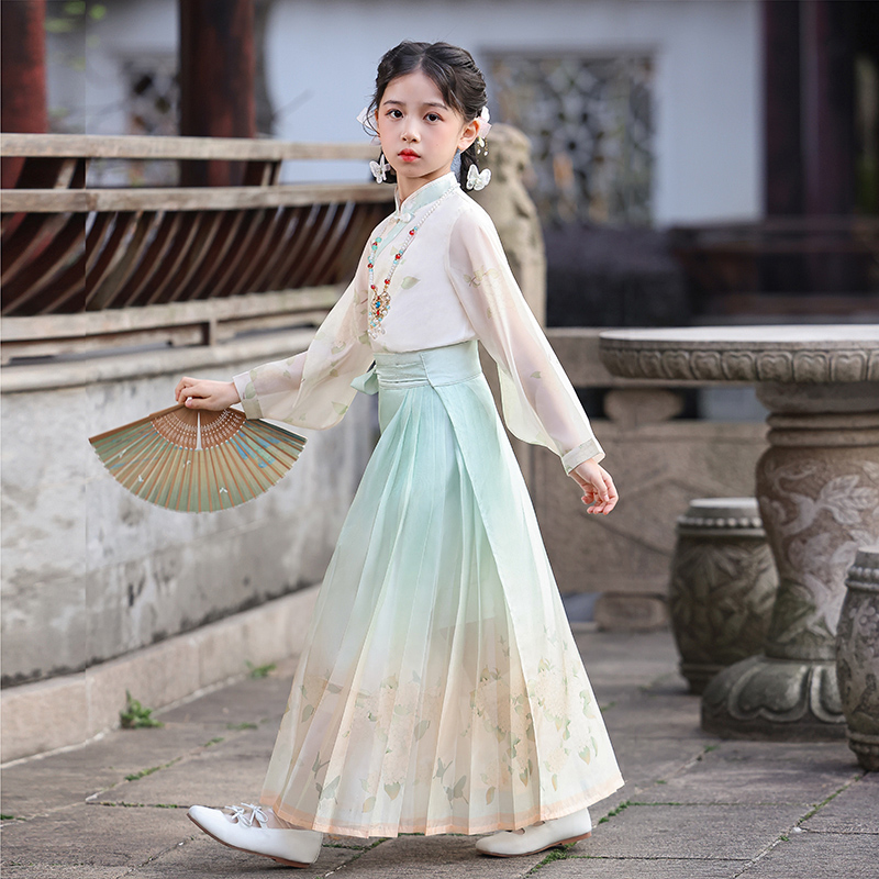 中秋节表演服装 演出服中国风唐装 2025新款 女童汉服儿童马面裙套装