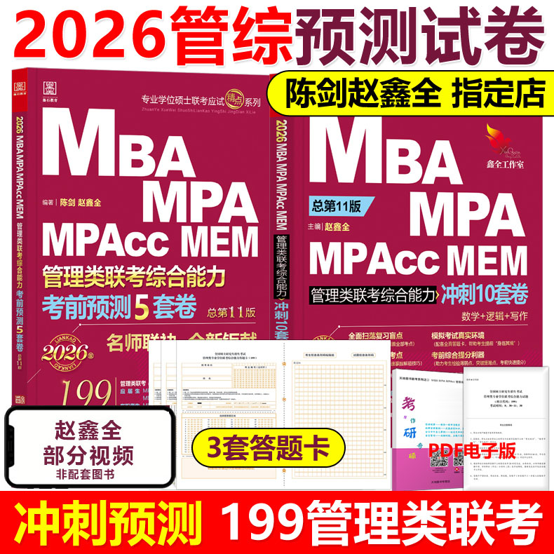 2026考研199管理类陈剑赵鑫全冲刺10套卷 预测5套卷考前押题预测模拟15套卷管理类联考综合能力mempacc会计专硕MBA考试396经济类