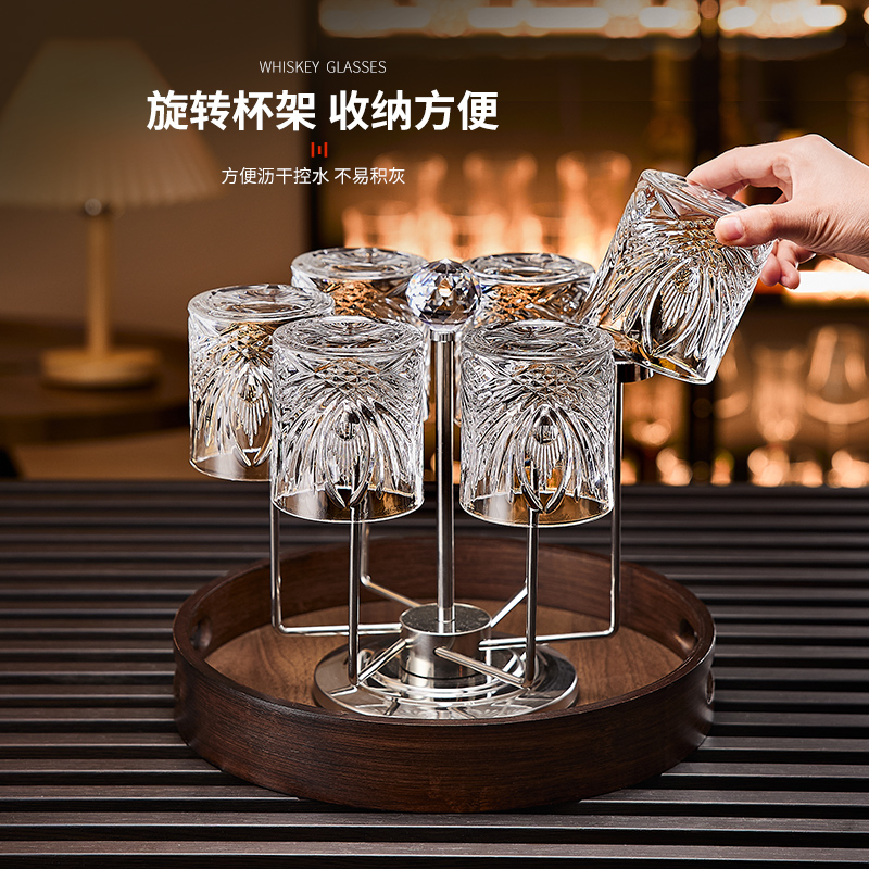 青苹果轻奢高档玻璃威士忌杯家用酒吧高端刻花雕花洋酒杯高级感杯