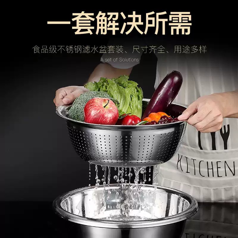 不锈钢沥水盆洗菜盆洗米筛厨房沥水篮家用滤水果篮漏盆淘米盆