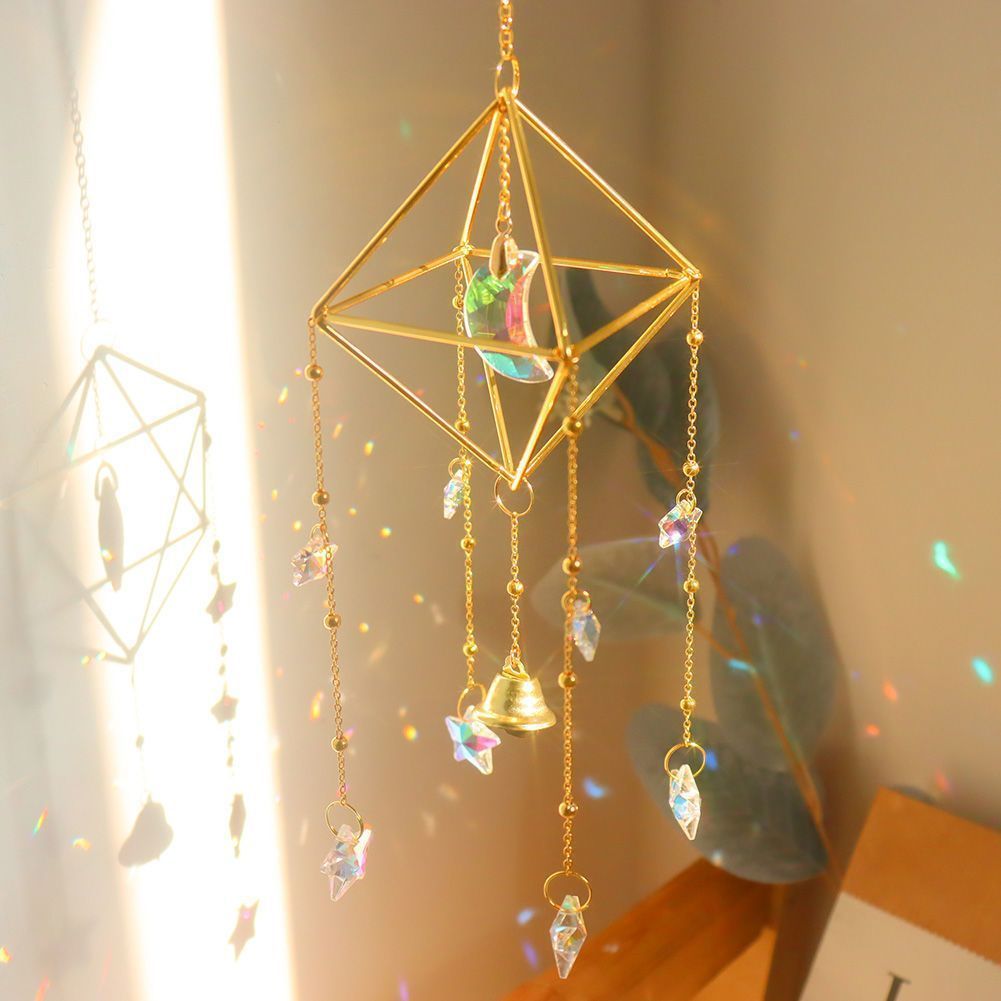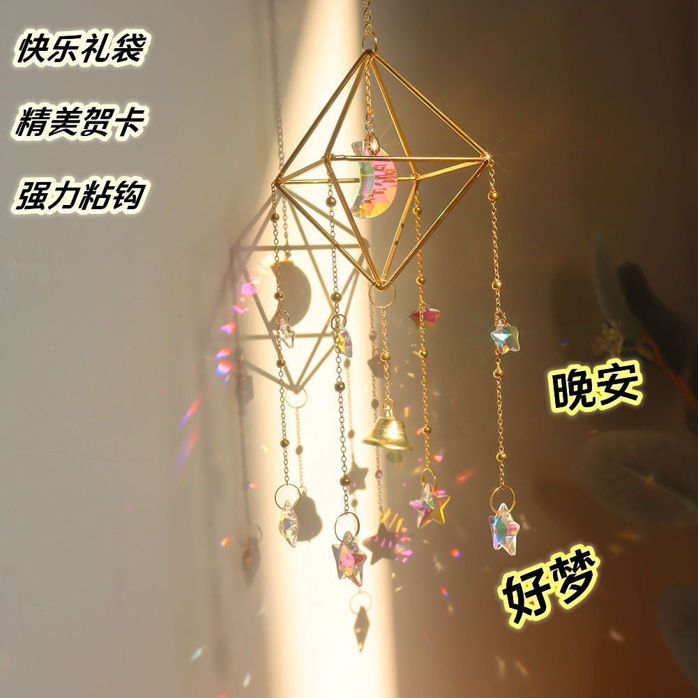 ins光影水晶风铃挂件铃铛卧式 房间窗户挂饰梦幻彩虹礼物阳光捕手