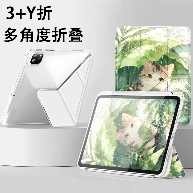 Y折第10代2022款 7亚克力3 防弯9.7 树叶小猫适用于ipad11代平板保护套mini7保护壳pro11英寸10.2带笔槽air5