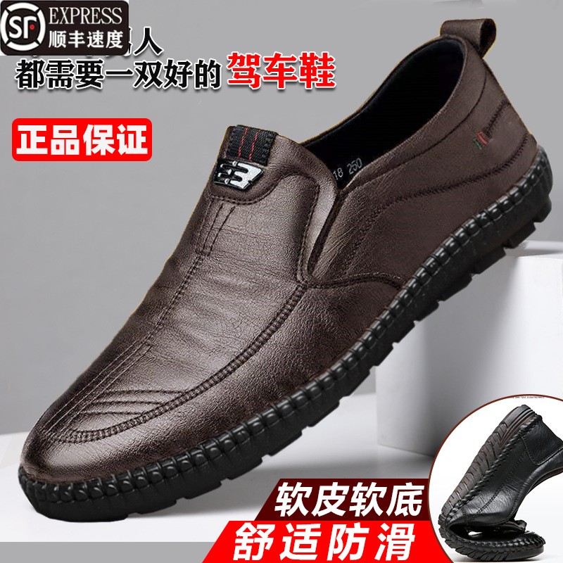 100%软皮 防滑透气软底皮鞋 2025特价 商务套脚皮鞋 中老年鞋 男士