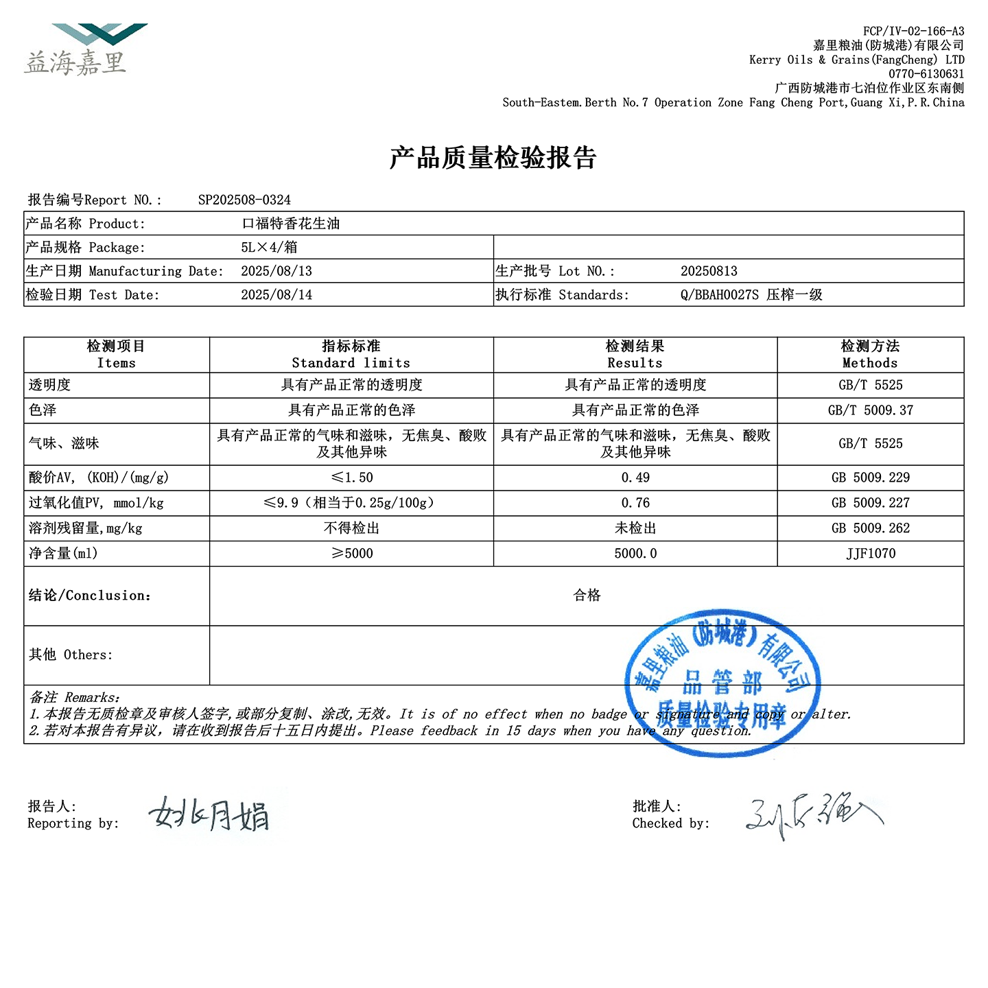 口福特香物理压榨一级花生油5L桶家用炒菜大桶食用油 工厂直销